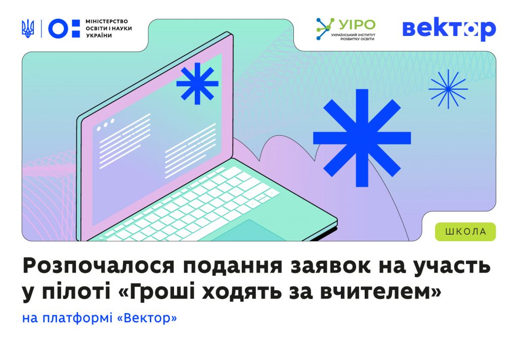 З 16 лютого педагогічні працівники можуть подати заявку на участь у пілотуванні державної політики «Гроші ходять за вчителем» через платформу «Вектор»: https://vector.uied.gov.ua/uk/