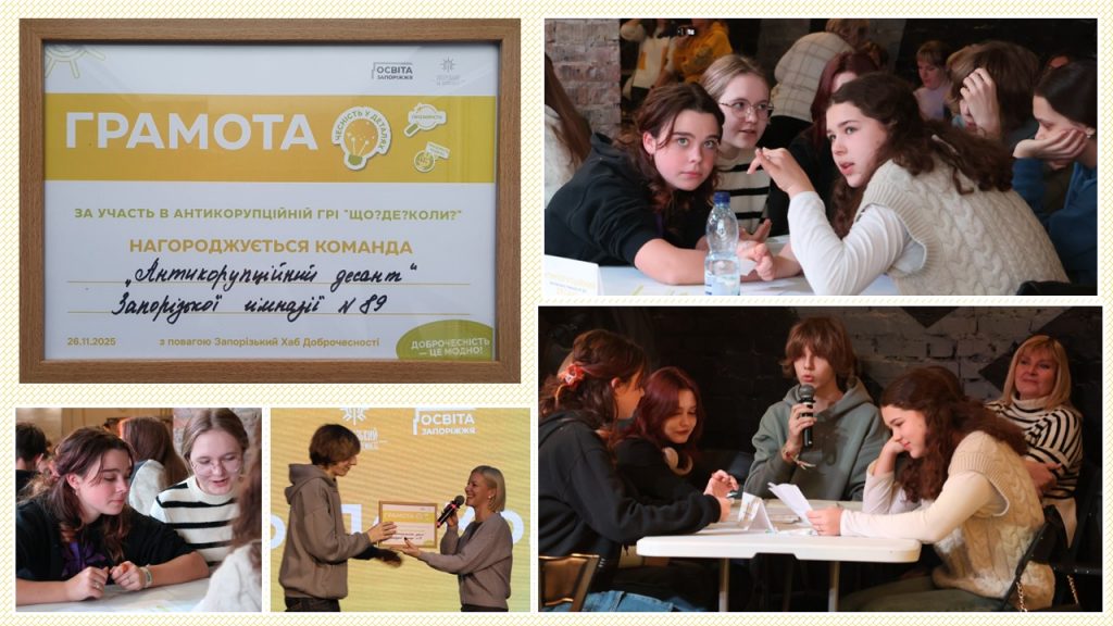 У середу, 26.11.25, у Незламному Хабі «Орбіта» пройшла яскрава та надзвичайно захоплива антикорупційна гра «Що? Де? Коли?» — подія, що об’єднала молодь навколо важливої теми доброчесності. Захід організовано Запорізьким хабом доброчесності в межах проєкту «Прозора школа».